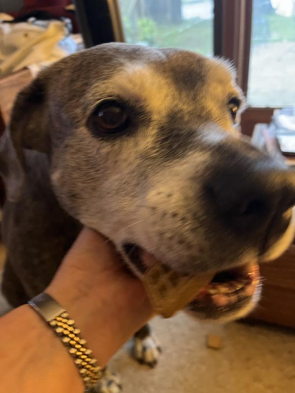 My dog gets a treat every time he comes in from going outside. We tried these and he immediately loved them. Good ingredients and a great taste, he’s a happily spoiled boy.