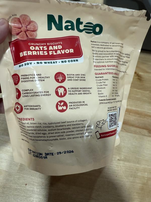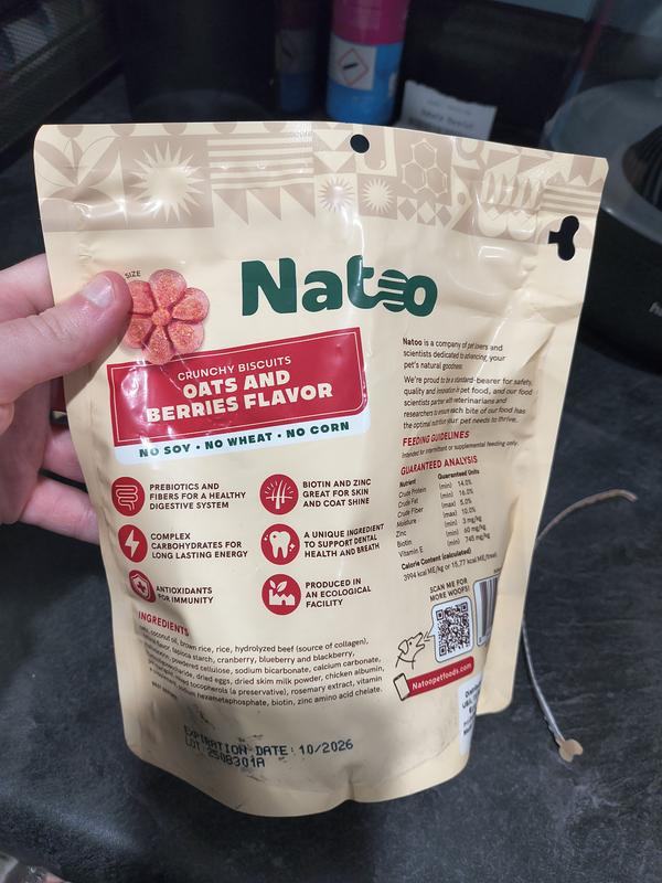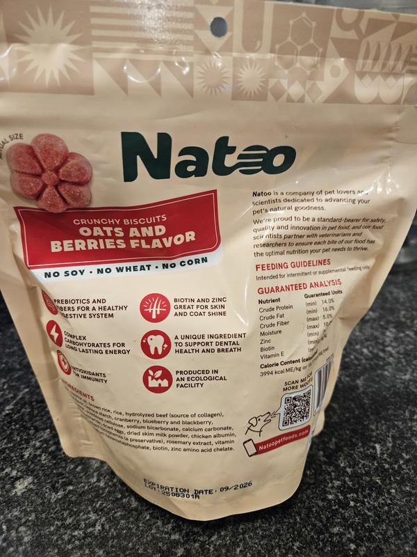 Natoo Oats & Berry Crunchy Biscuit Dog Treats, 8-oz bag