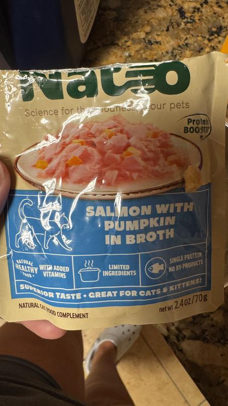 Natoo Salmon & Pumpkin in Broth Limited Ingredient Cat Food Topper, 2.4-oz pouch, case of 20