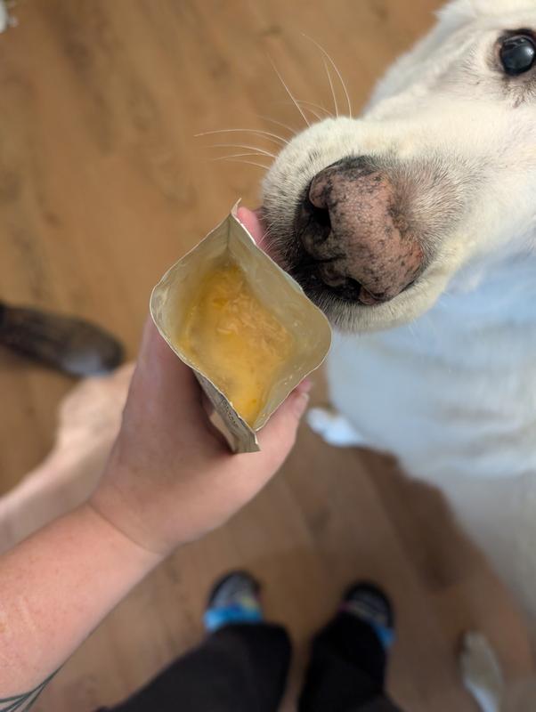 My dog absolutely loves these! They’re minimal ingredients and don’t interfere with her dietary allergies. Even right after she had surgery and wasn’t feeling her best, these made it so easy to entice her to eat her meals. I was even able to hide meds in there without her noticing, because she enjoyed this topper so much!
