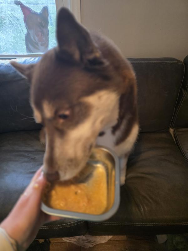 Dogs absolutely love this as a topper and the ingredients make me happy. Having corgis I give them a little bit on top of their kibble and they are happy loaves