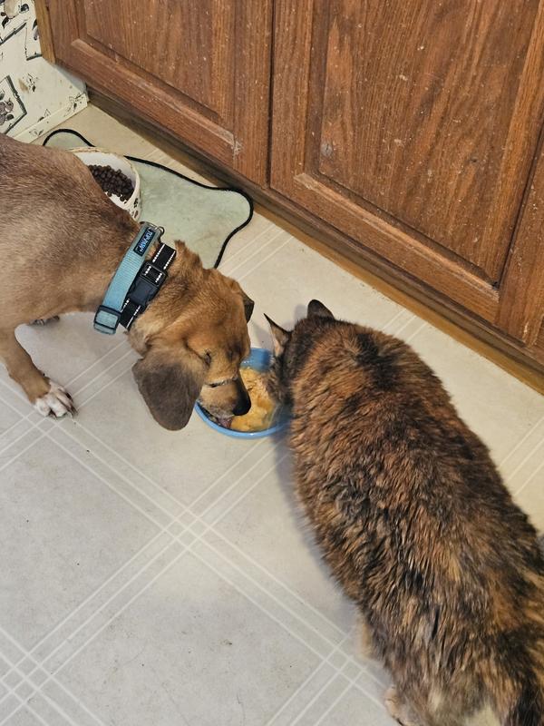 Dogs absolutely love this as a topper and the ingredients make me happy. Having corgis I give them a little bit on top of their kibble and they are happy loaves of bread. Mine are not picky eaters but I don’t think any dog would turn down the smell of salmon.