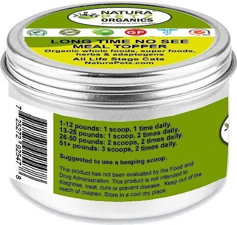 Natura Petz Organics LONG TIME NO SEE MEAL TOPPER* Vision & Ocular Health Support* Cat Supplement, 4-oz jar