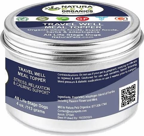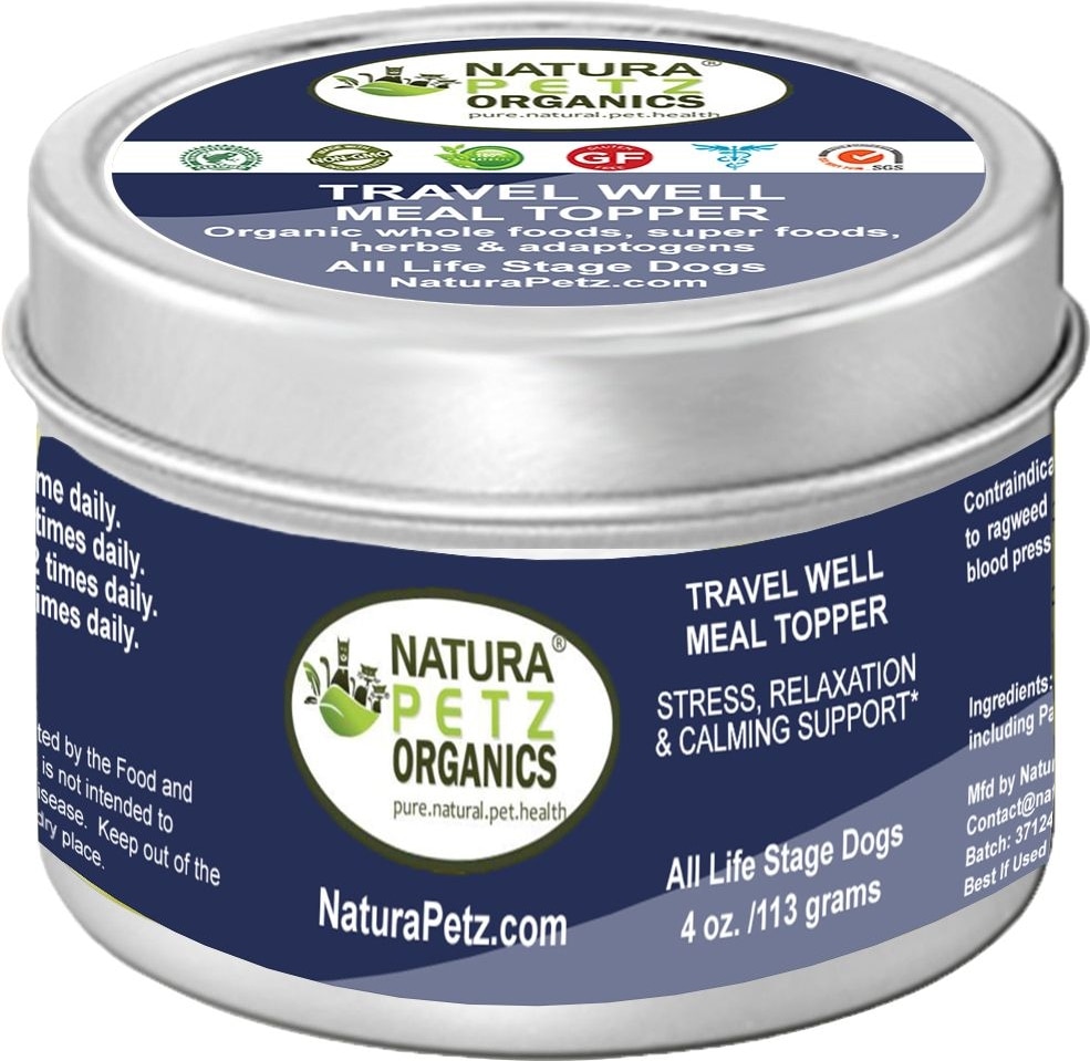 Natura Petz Organics TRAVEL WELL MEAL TOPPER* Stress, Relaxation & Calming Support* Dog Supplement, 4-oz jar