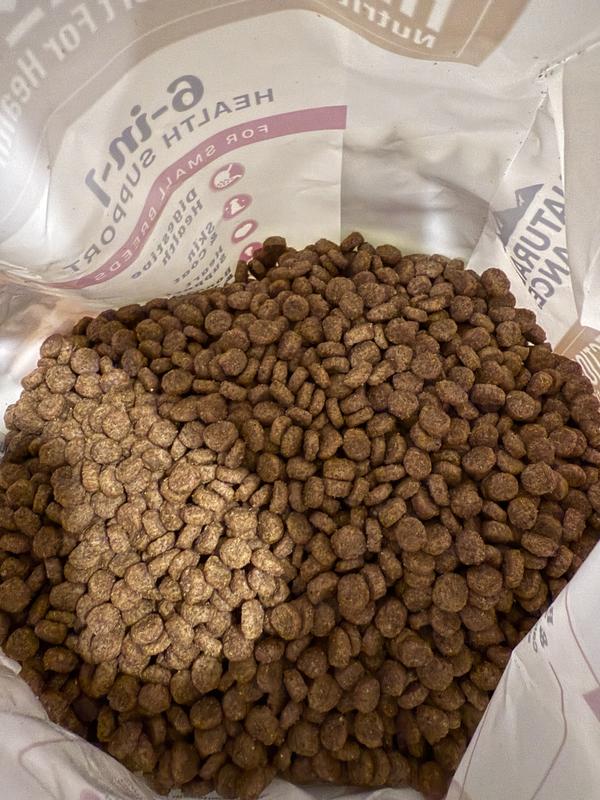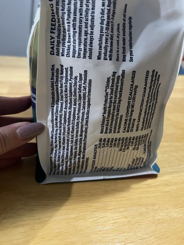 Natural balance really caught my eye with their list of ingredients. It’s not often that a meat source of protein and not a “meal” of some kind is listed first. I do also like the size of the kibble. With a 15lb terrier mix, she has issues with chewing some kibble, even if it’s listed as small breed. She’s a picky eater and does seem to enjoy the taste. She does really like pumpkin so that might be a reason! The smell is not too overwhelming or dog foody, the bag is really easy to open, but i do wish it came with a ziplock seal.