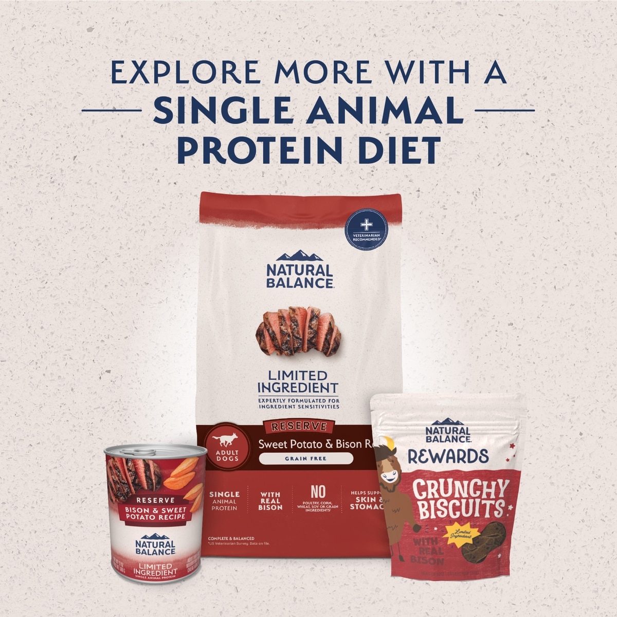Why Single Animal Protein? The #1 most common ingredient sensitivity is protein, so these recipes feature real meat, fish or poultry as the #1 ingredient and a single source of animal protein. Explore a variety of Natural Balance offerings to help feed a single animal protein diet.