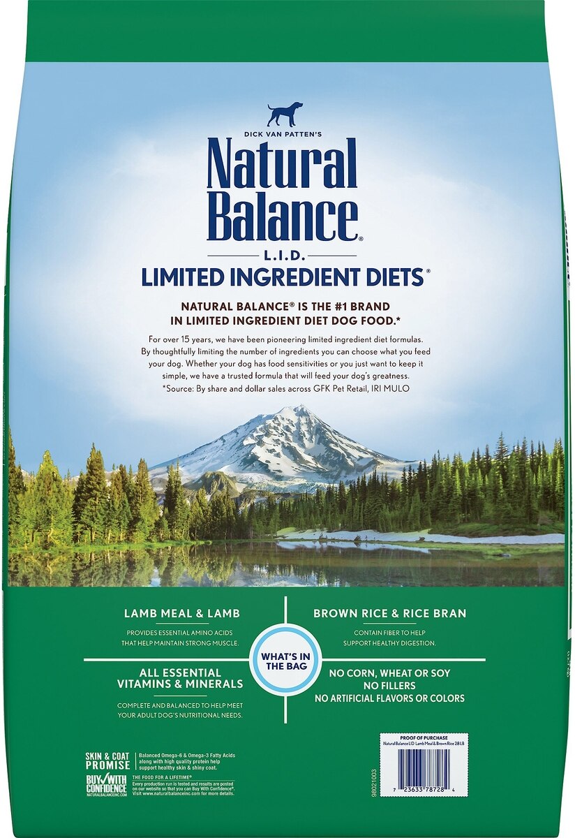 Natural Balance L.I.D. Limited Ingredient Diets Lamb & Brown Rice Formula Dry Dog Food, 28-lb bag