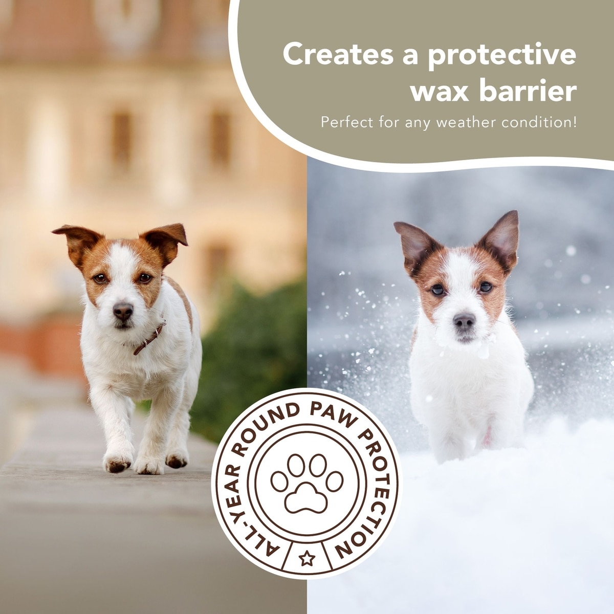 This balm is formulated to provide a protective barrier for your pup’s paw pads to prevent painful cracking, peeling, and contact with paw allergens, it helps protect their feet from harsh elements like heat, cold, sand, salt and snow.