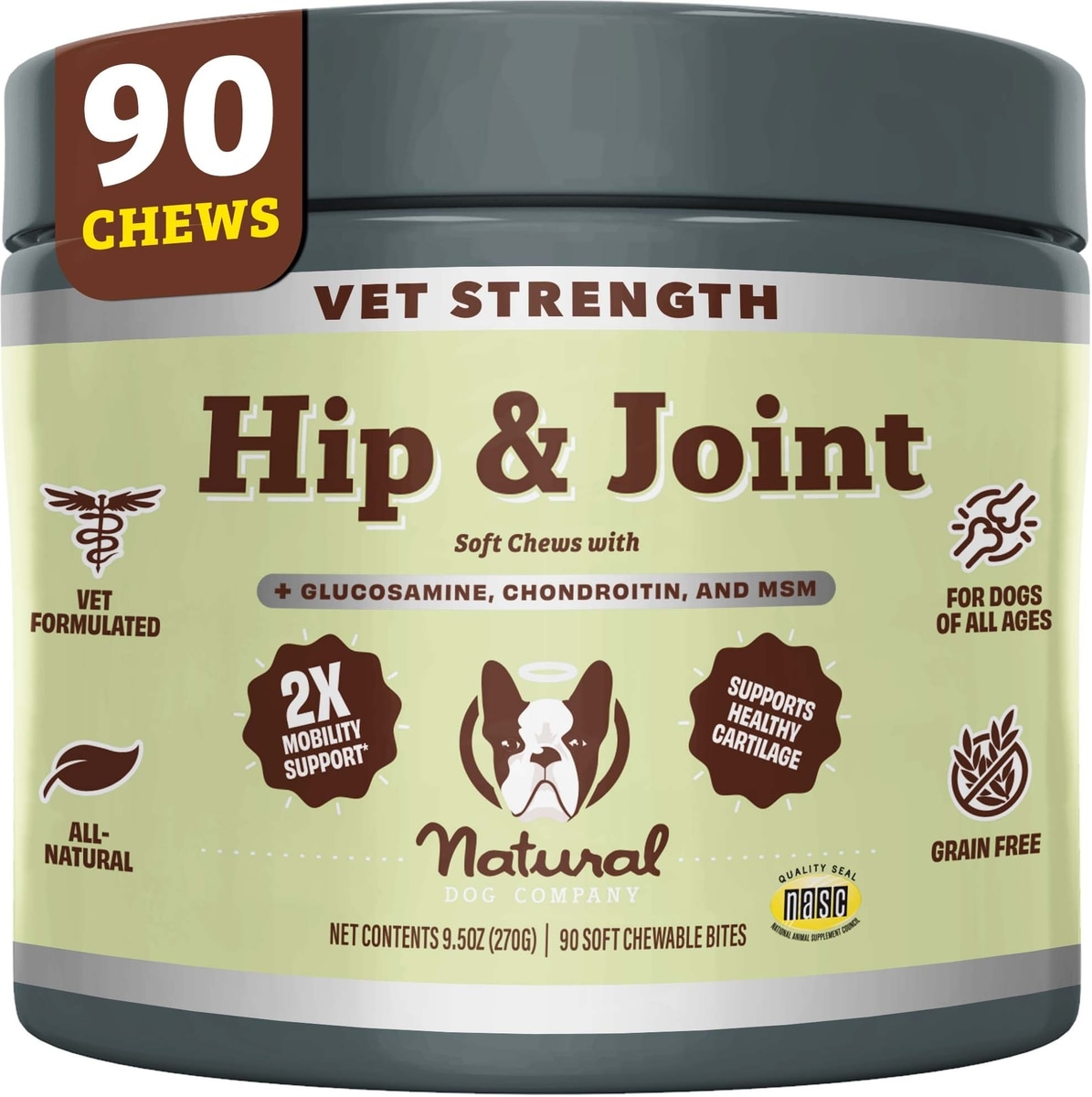 Natural Dog Company Vet Strength Turkey Soft Chew Hip & Joint Supplement, 90 count