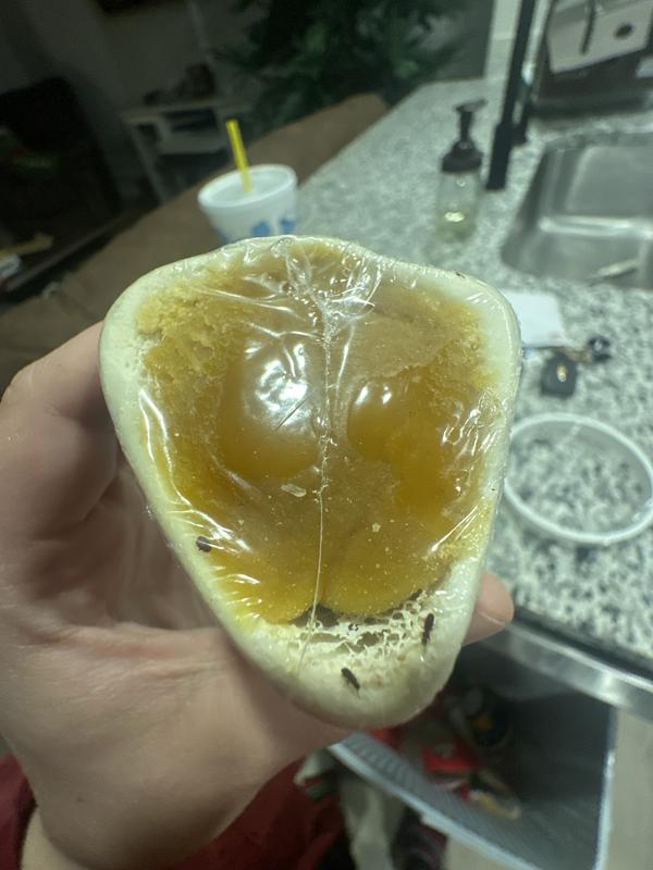 Unfortunately my medium size dogs only had a chance at 1 bone before I took them away. The bone shattered right away and the inside treat is this bright yellow that