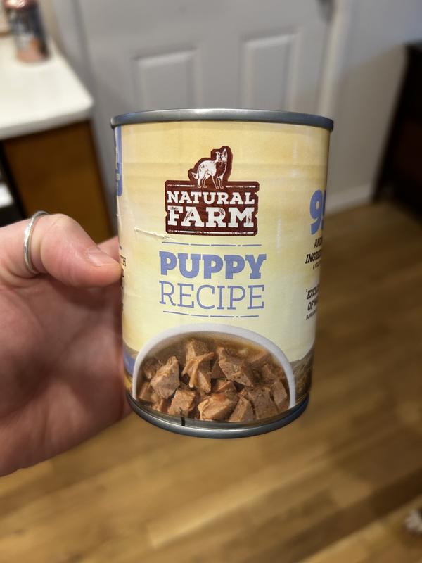 This wet food is so good that my English Cream Golden Retriever kept pawing me to give her more! She's a two year-old puppy and is so picky that I was nervous to try this with her but she loves it! She looks forward to eating her breakfast and dinner as she gets heaping spoonfuls of this wet food mixed in with her dry food and likes it so much better than her previous offerings. I'd not heard of Natural Farm before so I don't even know if it's new or if I can get it yet. I hope so or she's going to be really mad at me. I know she likes the meat and the gravy consistency, as well as the taste. It mixes easily with her dry food, making that taste a bit wetter and chewier. She doesn't like a hard kibble so the fact that this softens it helps a lot. The size of the can is good for her, too. We can get several meals out of it when compared to other brands. Good stuff! Hoping the price point will be good, too!