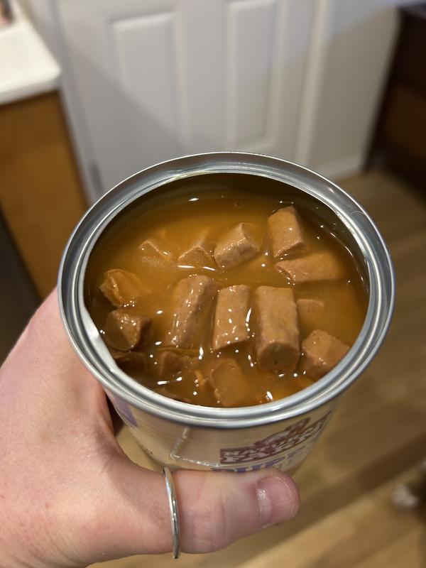 Pups LOVE it! Upon opening the can you can tell only high quality ingredients are used. Food was firm, smelled fresh and tasty. Visible carrots (my dogs love) and mix of shreds and chunks. Dogs happy dance waiting for their meals and inhale it!