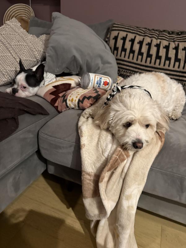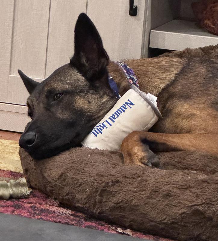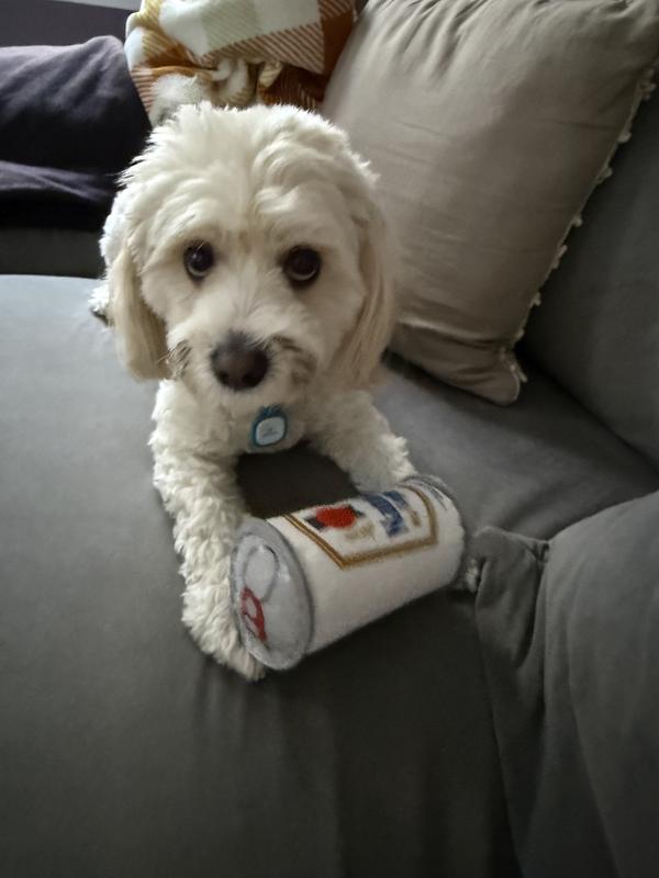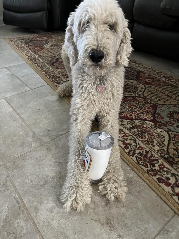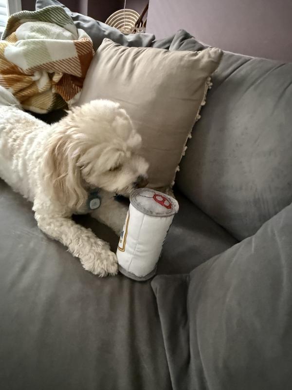 Cute and funny dog toy. The dogs liked it enough, however, I don’t know why anyone makes white dog toys. They just get dirty with my squad. My other issue was the noise maker. It reminded me of those cows you tip back and forth. I was the only one who could make it make the noise. I will say it’s a fun party gift! So quirky. And who still drinks Natty Light haha