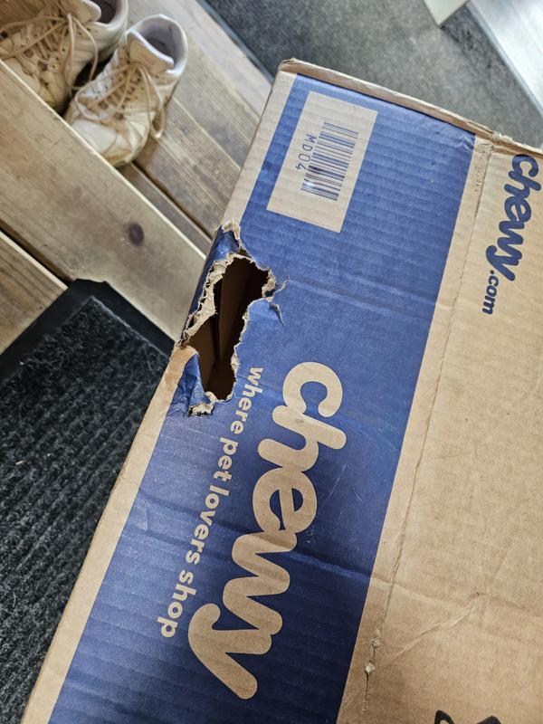 My delivery showed up with a hole in the box and a package of this dog food ripped open. I had a delivery prior to this damaged as well but did not make mention as it was cat litter. But this dog food is expensive and should not arrive damaged as this was.