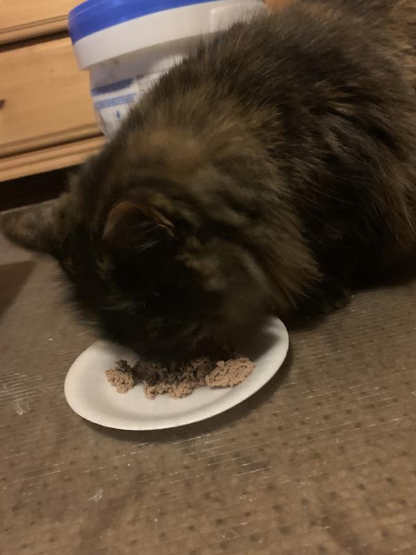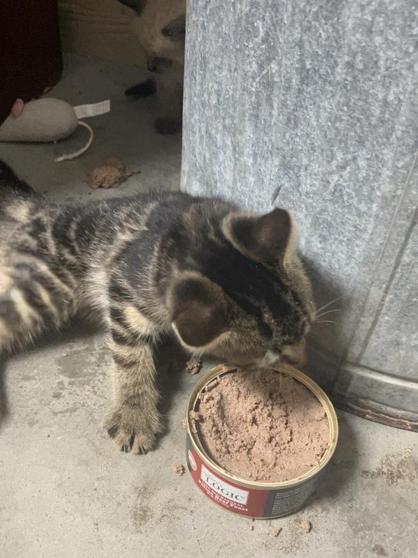 Nature’s Logic only substantiates their foods using AAFCO Feeding Trials and not by adding synthetic vitamin and mineral packs to help it meet AAFCO nutrient profiles. The cat can testing is in progress but not yet completed, once the trials are completed the AAFCO statement for feeding trail substantiation will go on the can. The food is safe and nutritious enough to feed daily.