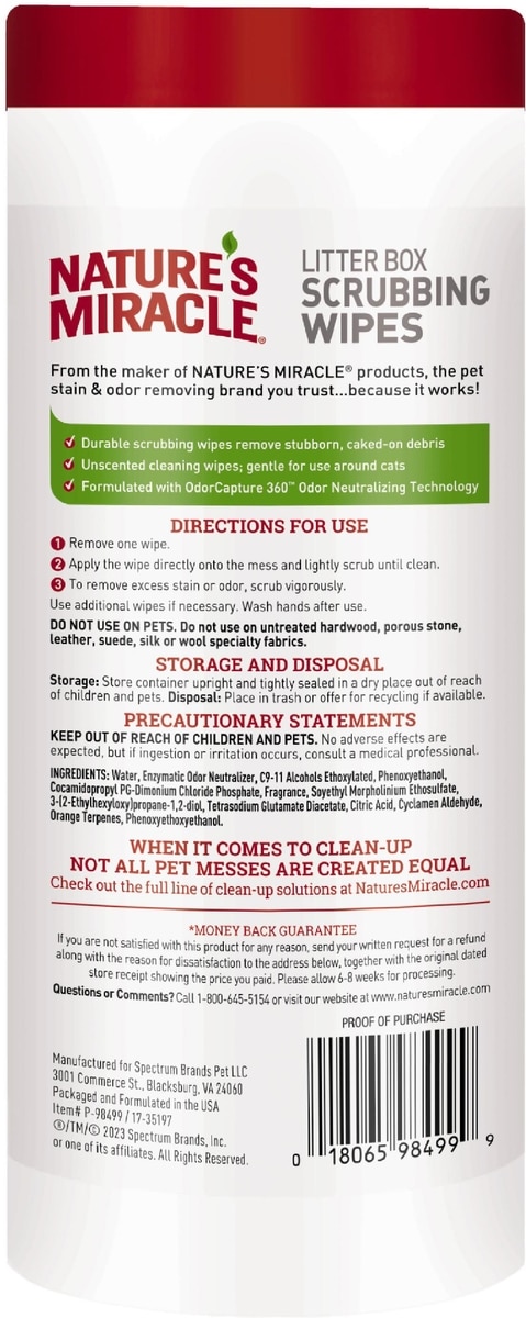 Nature's Miracle Cat Litter Box Scrubbing Wipes, 30 count