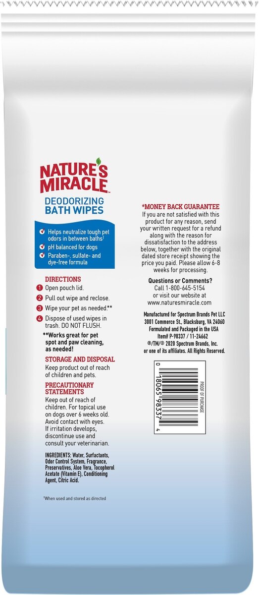 Nature's Miracle Fresh & Clean Deodorizing Dog Bath Wipes, 100 count
