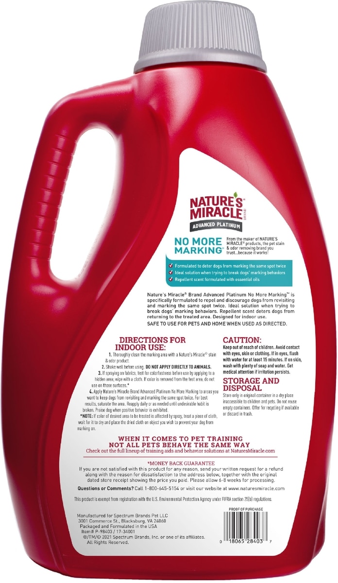 Nature's Miracle Advanced Platinum No More Marking Pet Stain & Odor Remover, 128-fl oz bottle
