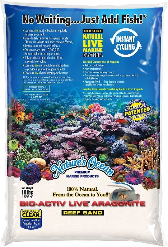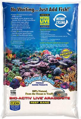 Nature's Ocean Bio-Activ Live Aragonite Saltwater Aquarium Sand, Natural White #0, 10-lb bag