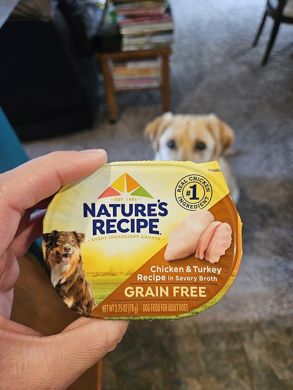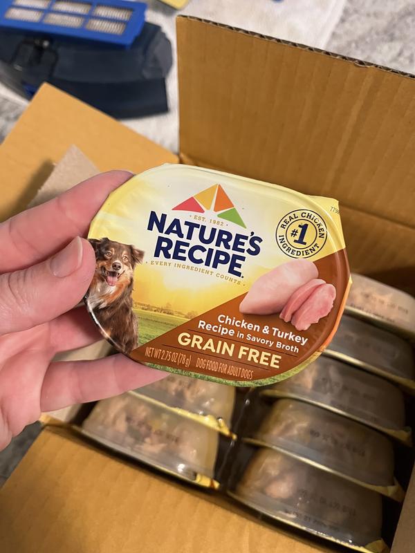 Nature's Recipe Chicken & Turkey in Broth Recipe Grain-Free Wet Dog Food, 2.75-oz tray, case of 12