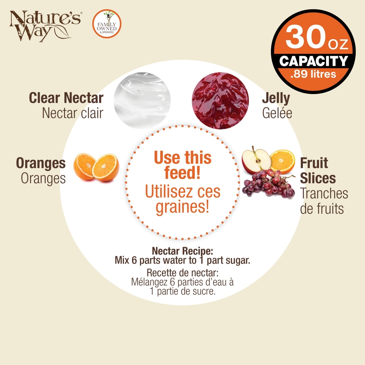 Natures Way Bird Products Orange Blossom Oriole Feeder with Jelly Attachments, Orange, 30-oz