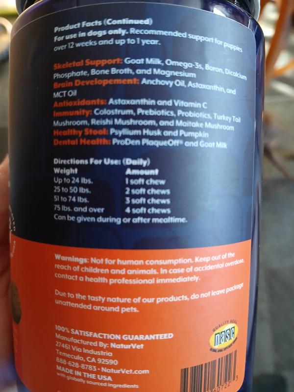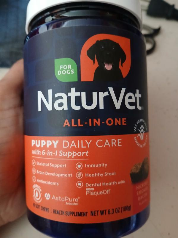 NaturVet All-In-One Hickory Smoked Bacon Flavor Soft Chew Daily Care Supplement for Puppies, 60 count