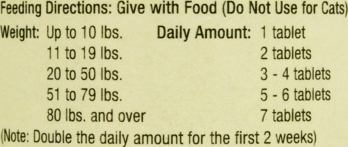 This product can be used as early as 12 months of age for all canines. Senior dogs may have to take these with caution as their systems are more sensitive. The weight range is what's most important. For dogs up to 10 pounds give 1 tablet daily. Dogs weighing 11-19 pounds should be be given 2 tablets daily. Dogs weighing 20-50 pounds should be be given 3-4 tablets daily. Dogs weighing 51-79 pounds should be be given 5-6 tablets daily and dogs over 80 pounds should be given 7 tablets daily. Initially, the dosage should be doubled for the first 2 weeks.