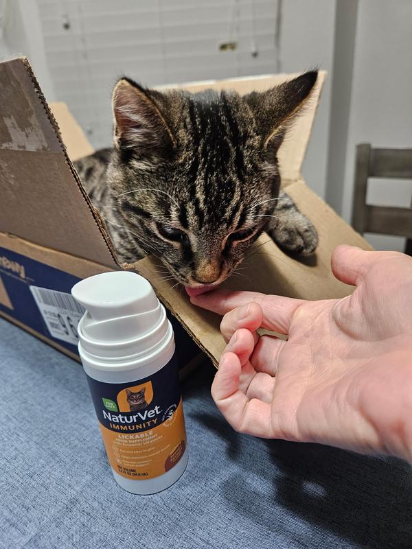 My cats do not like any lickable things but they absolutely love this supplement (all 4 of them)…and a Salmon flavor to boot (they don’t normally eat Salmon anything). It is a simple to use product and the directions are easy to follow. The best part is that you don’t need to know your cat’s weight/ages and do calculations to figure it out; simple and easy 3 pumps per day for any weight and any age over 12 weeks. It hasn’t been long enough to see if there is any positive effect on them, however no negative effects at all…cats are their normal selves with some extra vitamins to support their immune systems. I’ll call that a win win in my book.