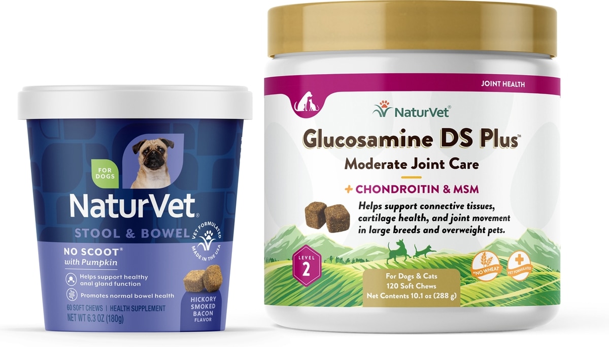 Bundle: NaturVet No Scoot Dog Soft Chews, 60 count & NaturVet Glucosamine DS Plus MSM & Chondroitin Dog & Cat Soft Chews, 120 count