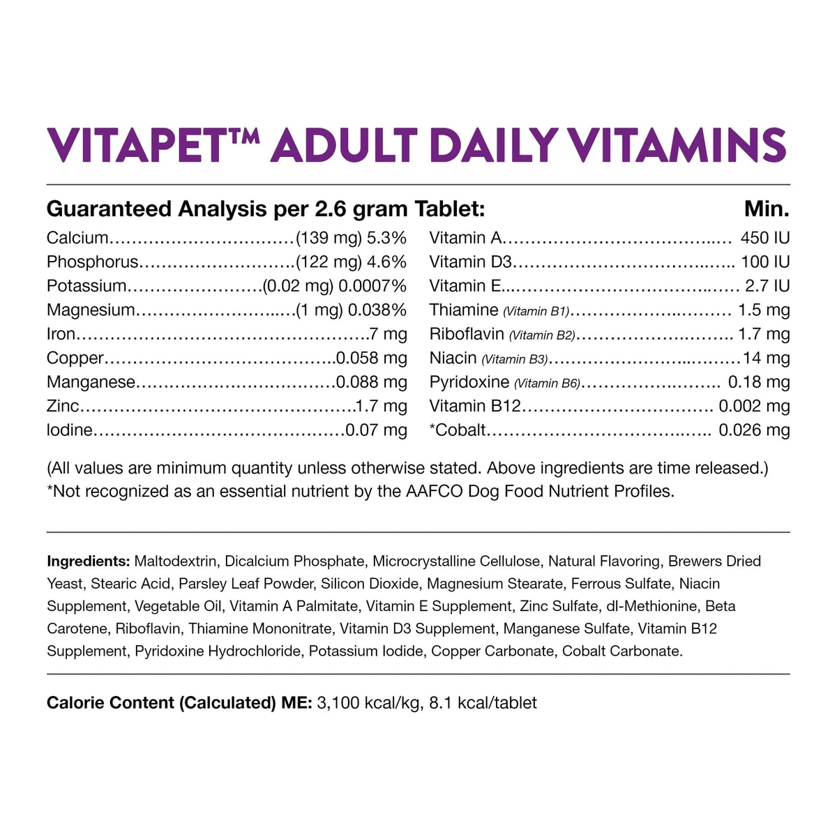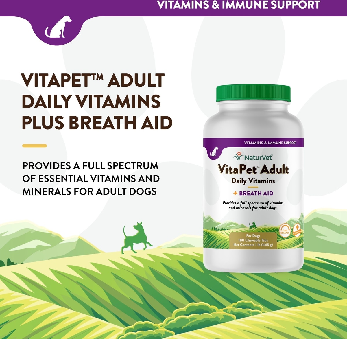 NaturVet VitaPet Adult Daily Vitamins Immunity Hickory Smoked Flavored Tablet Supplement for Dogs, 180 count