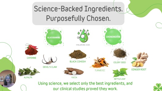 - Powerful blend of natural ingredients, including glucosamine, chondroitin, hyaluronic acid, turmeric, alfalfa, and yucca.