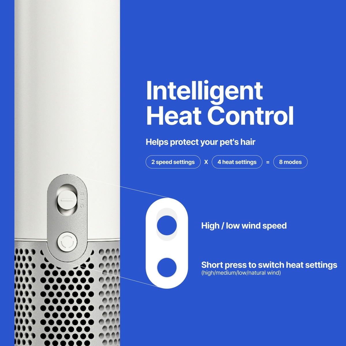 - Customize your pet's grooming with 2-speed and 4-temperature control options.