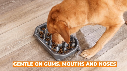 This slow feeder can be adjusted at 2 inches, 3 inches, and 4.5 inches for lifting, and features a non-skid bottom.