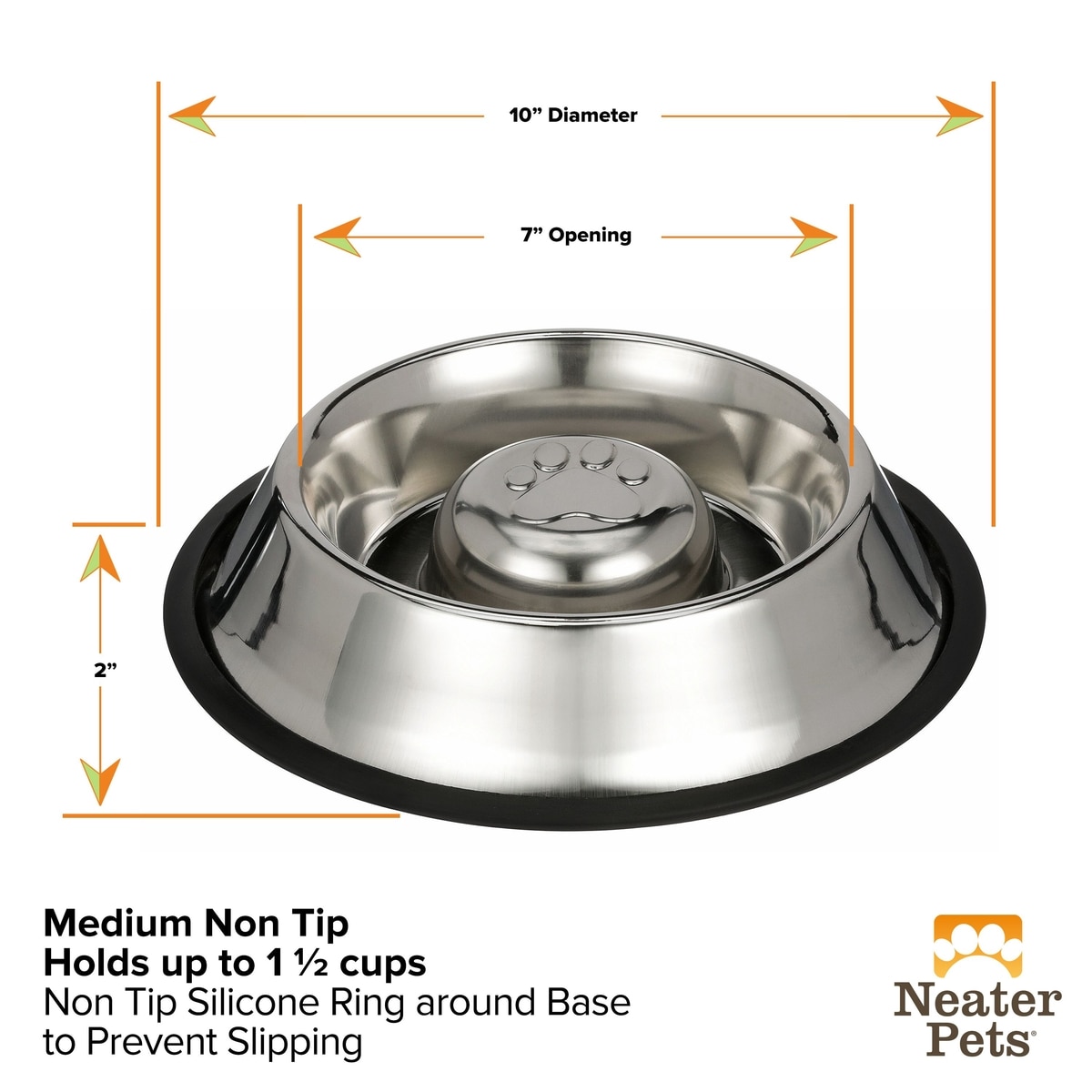 Neater Pets Non-Skid Non-Tip Stainless Steel Slow Feeder Dog Bowl, 2-cup