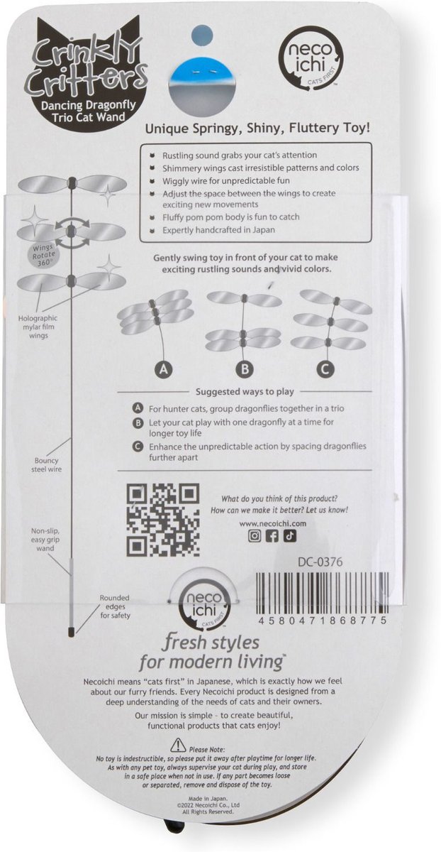 Necoichi Crinkly Critters Dancing Dragonfly Trio Cat Wand Toy