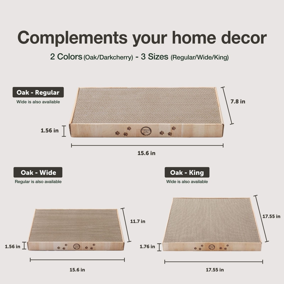 Necoichi Premium High-Density Cat Scratcher, Oak, Wide