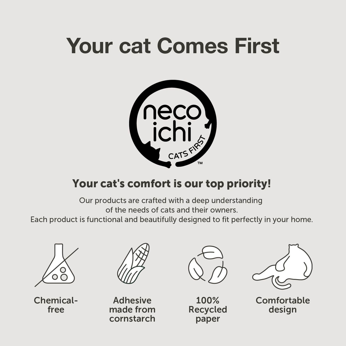 Necoichi products are crafted with a deep understanding of the needs of cats and those who love them. Each product is functional and beautifully designed to fit perfectly in your home.