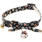 Necoichi ZEN Hariko Charm Cotton Breakaway Cat Collar with Bell, Black, 8.2 to 13.7-in neck, 2/5-in wide