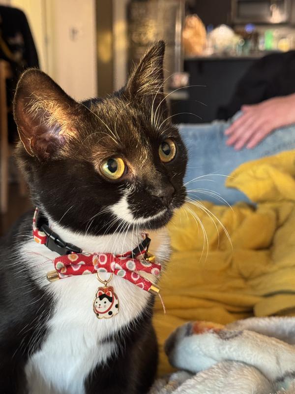 - DealNecoichi Kiku Ribbon Bow Tie Cotton Breakaway Cat Collar with Bell, Baby Blue, 8.2 to 13.7-in neck, 2/5-in wide$15.19 Chewy Price$18.99 List PricePromo, New Customers Only: Spend $49+, Get $20 eGift Card