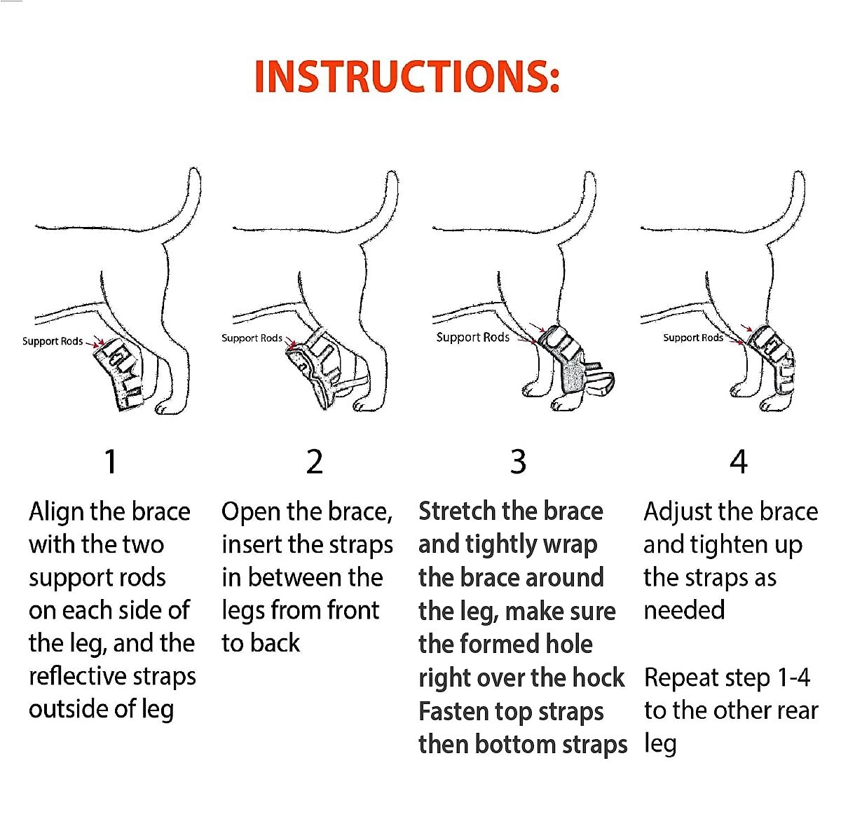 NeoAlly dog rear leg braces with metal spring strips are semi-rigid braces for dogs who suffer from limb or injury due to arthritis or aged dogs. The braces also help dogs with torn ACL or CCL, sprains or stains of the canine knee, post-operative support and stabilization of dog rear legs.