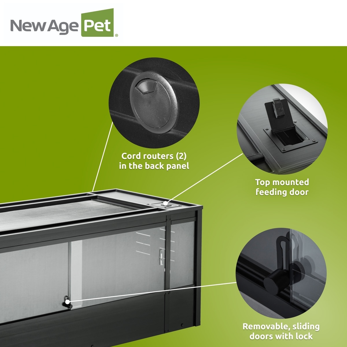 New Age Pet ECOFLEX Mojave Reptile Enclosure, Black, 150-gal—Designed with removable sliding glass doors that feature a lock for extra security.