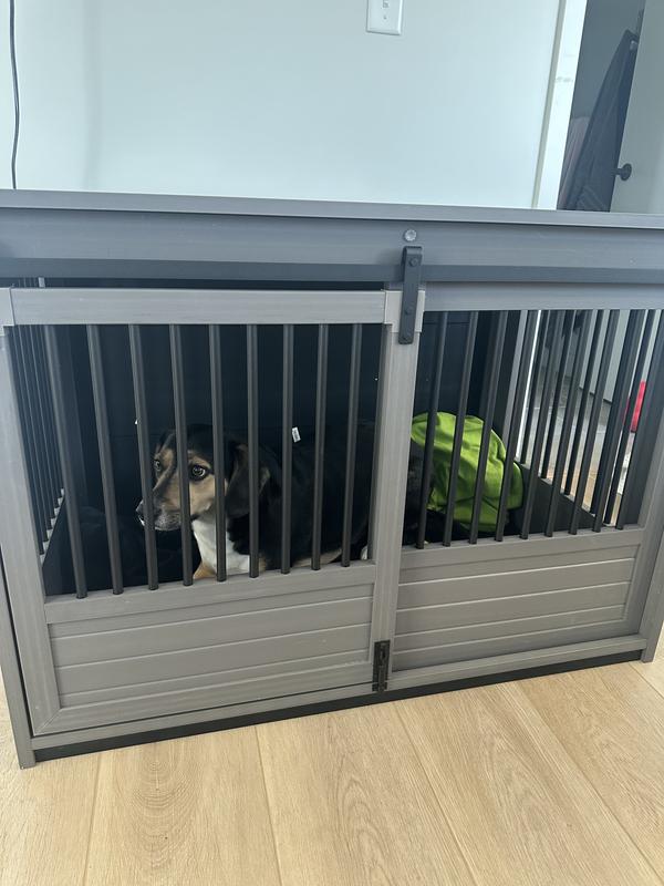 New Age Pet ECOFLEX Barn Door Furniture Style Dog Crate & End Table, Grey, Large