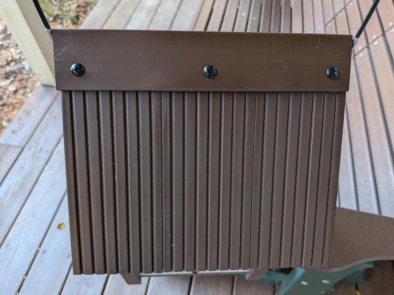 Overall, this looks like it will be a bird house to last many years! Sturdy, heavy materials, it will need at good, strong hook or limb to hang from. One side