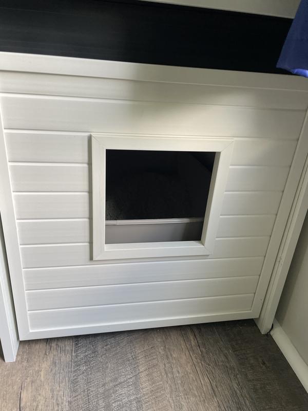 The interior dimensions for the standard unit are 15.7 inches wide x 21.2 inches long, and the internal height is 18.3 inches. This unit is designed to accommodate most standard-sized litter boxes. The entire internal section is a drawer-like structure that secures to the outer shell with a magnetic closure and features a floor panel. The top of the enclosure is designed to hold up to 22.04 pounds.