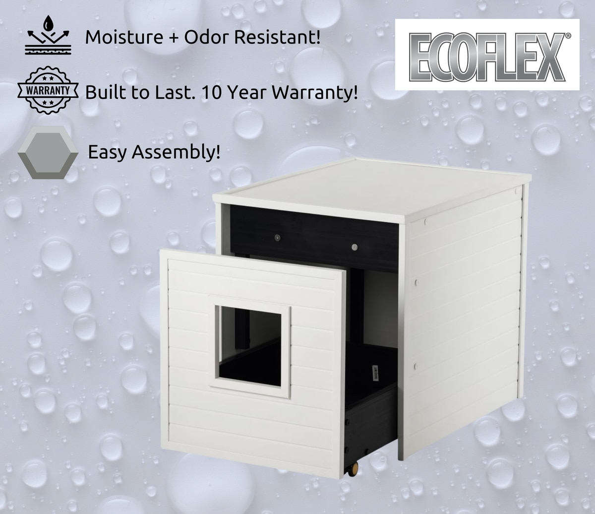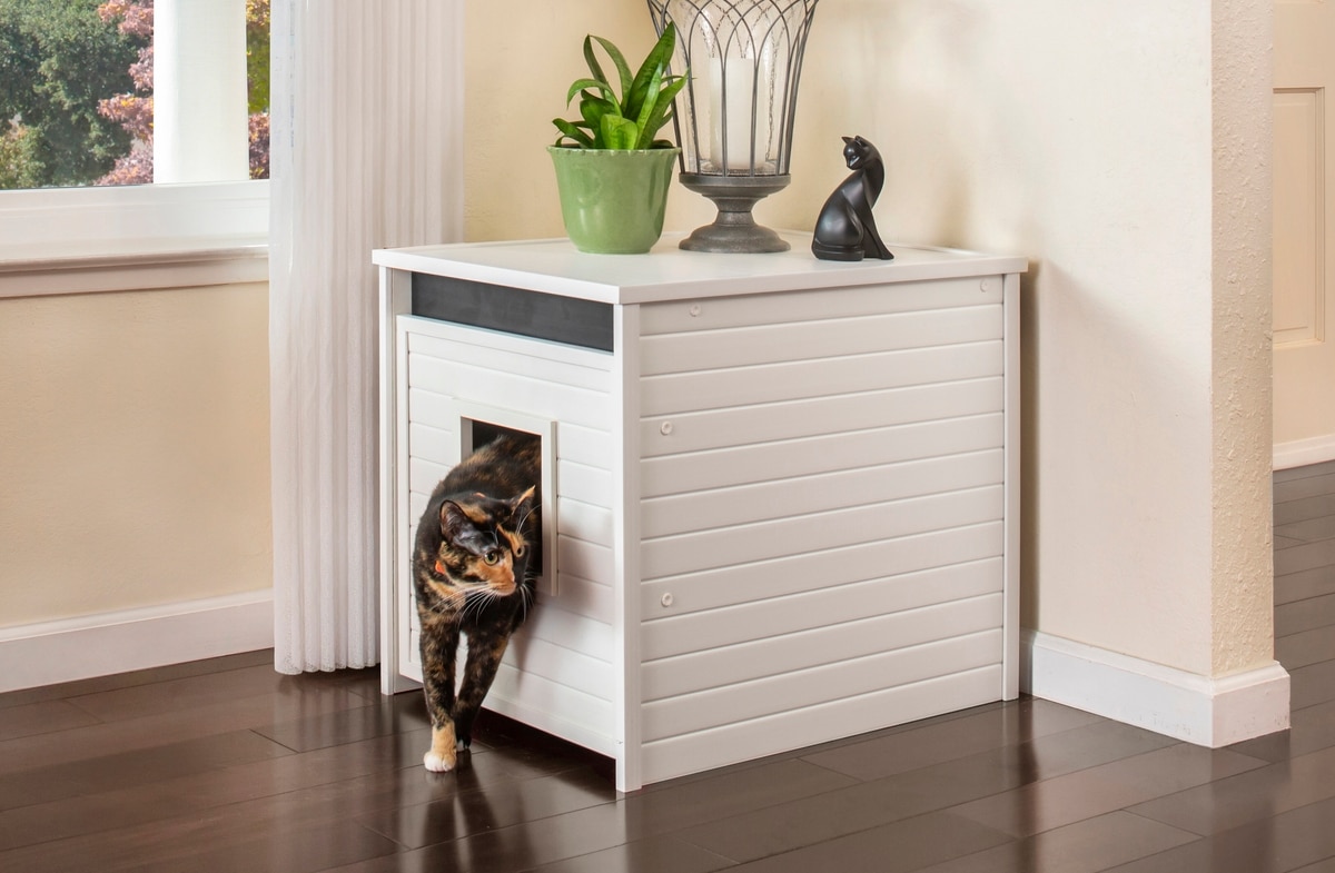 New Age Pet ECOFLEX Freedom LitterLoo with Pull Out Drawer End Table Cat Litter Box Enclosure, Antique White