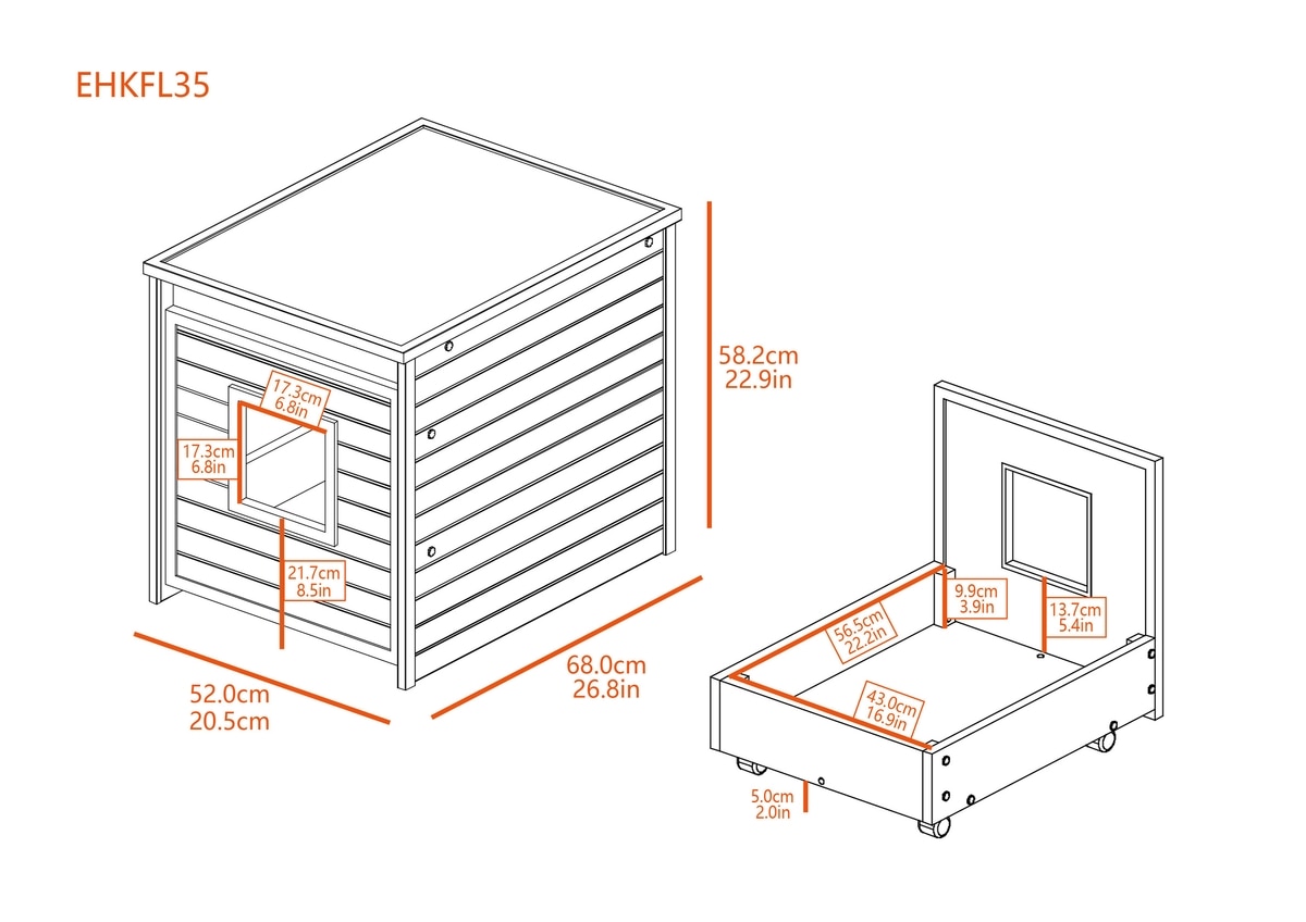 The interior dimensions for the standard unit are 15.7 inches wide x 21.2 inches long, and the internal height is 18.3 inches. This unit is designed to accommodate most standard-sized litter boxes. The entire internal section is a drawer-like structure that secures to the outer shell with a magnetic closure and features a floor panel. The top of the enclosure is designed to hold up to 22.04 pounds.
