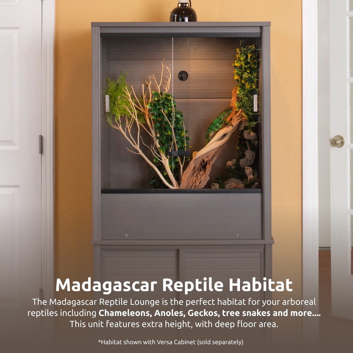 New Age Pet Madagascar Vertical Chameleon & Arboreal Reptile Terrarium, 30x24x36-in, Grey—Extra height is perfect for arboreal reptiles, and features a deep floor area for substrate.
