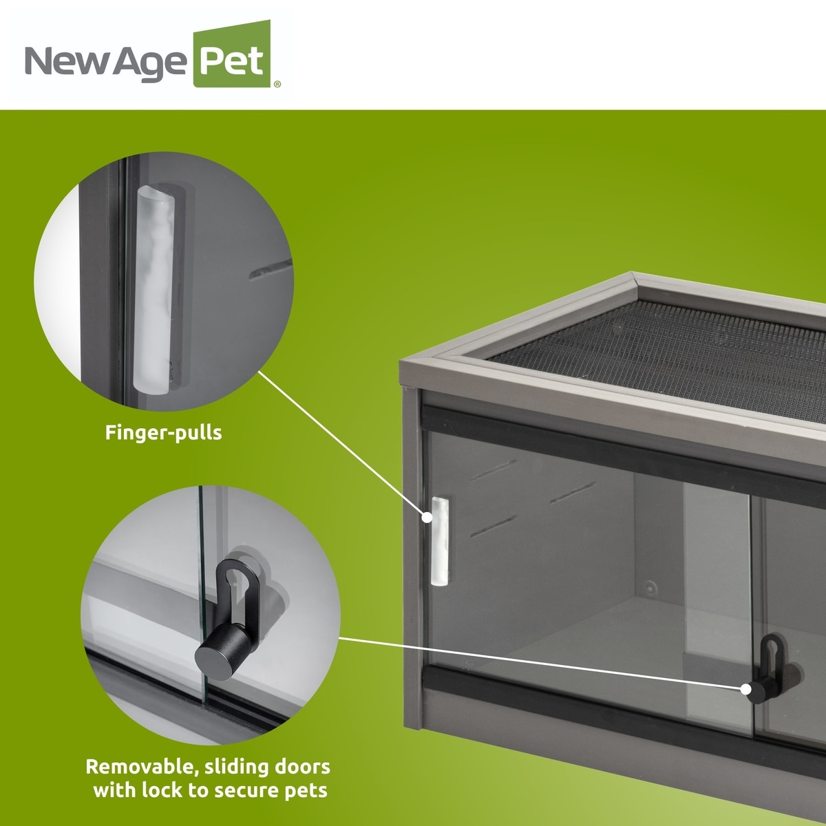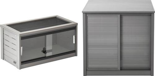 New Age Pet ECOFLEX Mojave Reptile Enclosure, Grey, 15-gal—Designed with removable sliding glass doors that feature a lock for extra security.