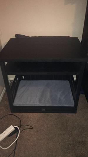 What is the height of the compartment where the bed is? I understand it’s 27” in height for the table however I need to know how low the shelf sits to ensure my dog could fit.