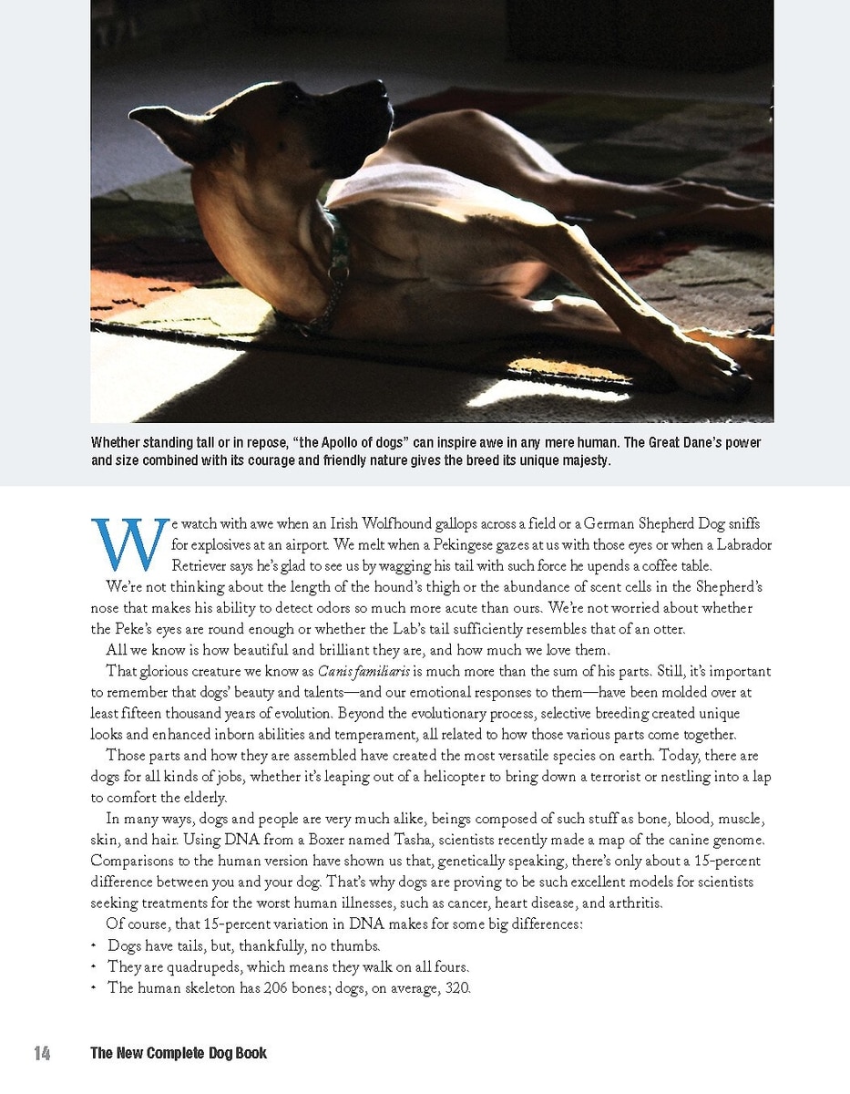For over 88 years, the New Complete Dog Book has been the American Kennel Club’s ultimate breed resource—the one book that no purebred dog aficionado and expert can live without. This definitive guide offers readers the official standard for every AKC-recognized breed, group histories, puppy-buying tips and pet attributes. You’ll enjoy over 800 stunning color photographs as you discover more than 200 breeds of canine companions. It also includes an illustrated glossary of canine terminology. The 22nd edition contains revised breed standards, changes in breed classifications and recently recognized breeds along with current information on AKC registration, competitive events and programs.